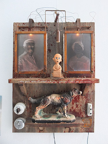 20 artistes ont crée chacun une oeuvre (ou deux) en liaison avec un premier roman lors de ce festival, j'ai choisi "Ce qui nous sépare" d'Anne Collongues et "Les Contes Défaits" d'Oscar Lalo. |